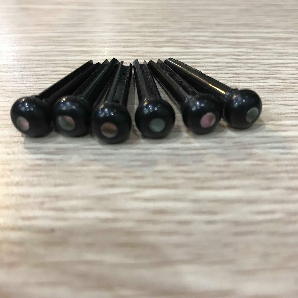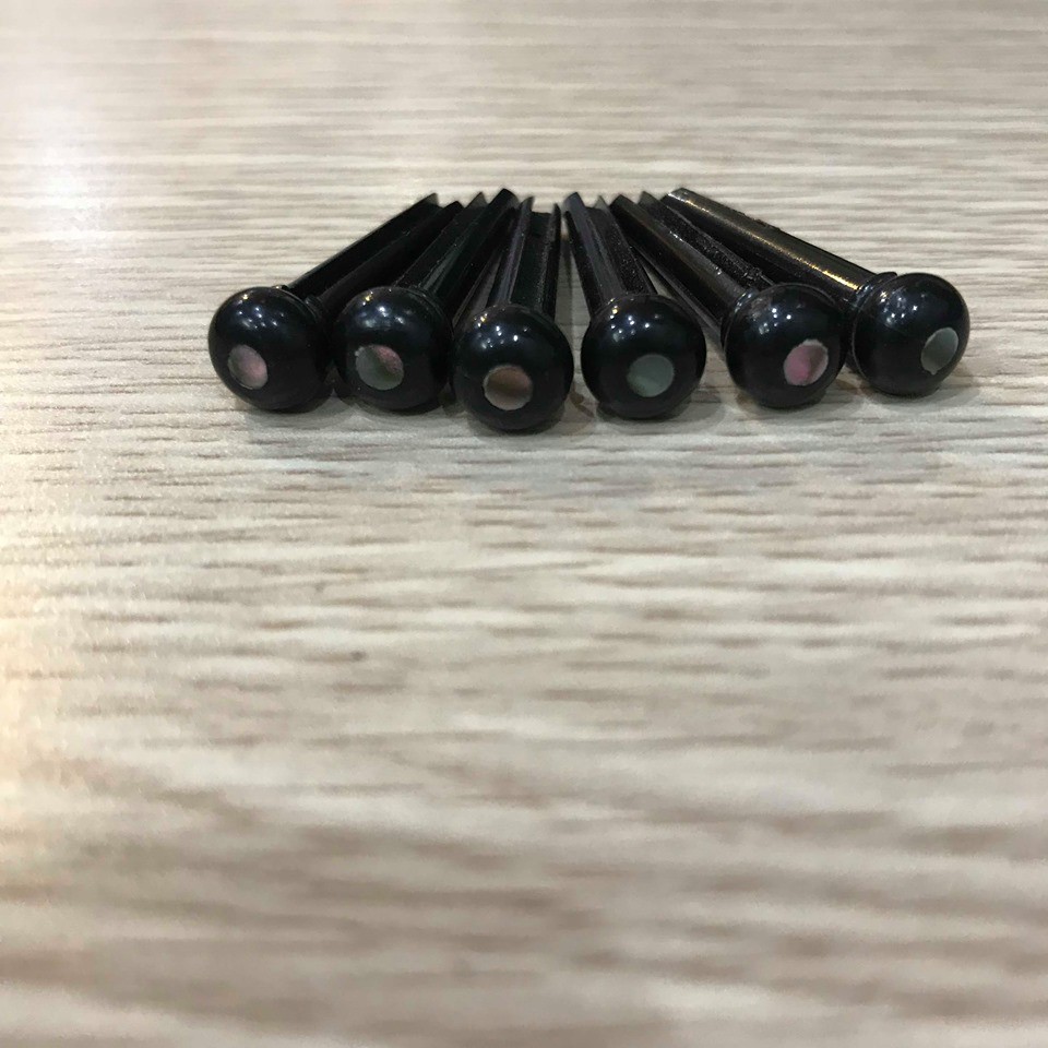 1 bộ đầy đủ 6 chốt ghim đàn guitar cao cấp màu đenĐầu chốt cẩn xà cừ
