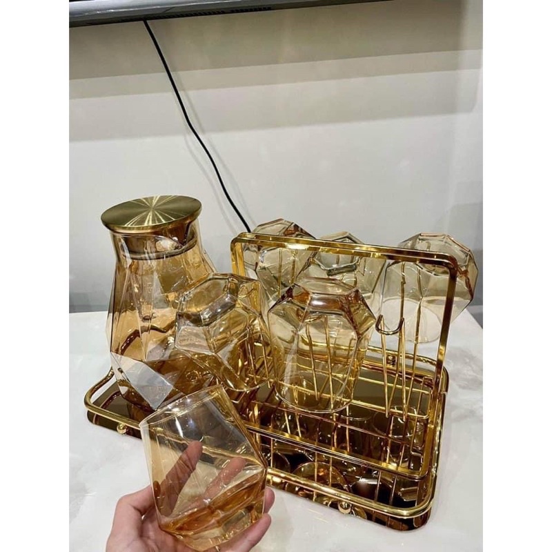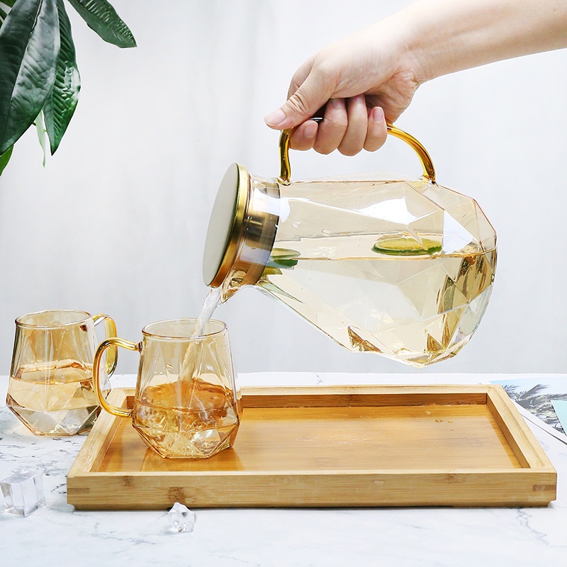 Nhà cửa & Đời sống > Bộ đồ bàn ăn > Bình nước & phụ kiện || Bộ 6 cốc kèm bình nước thuỷ tinh vàng chịu nhiệt cao cấpCòn hàng