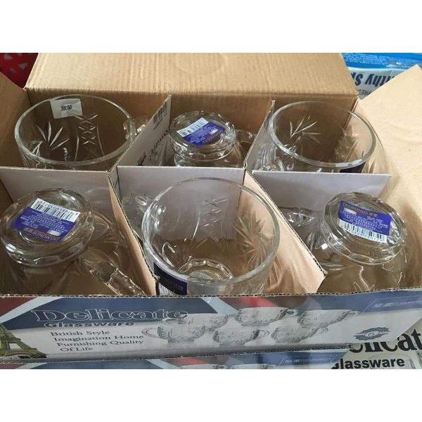 Cốc thuỷ tinh có tay cầm , về đủ mẫu nha , Bộ 6 chiếc ... làm quà tặng thì còn gì sang hơn !!!