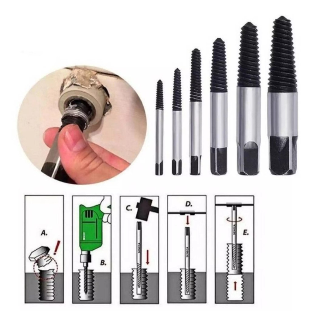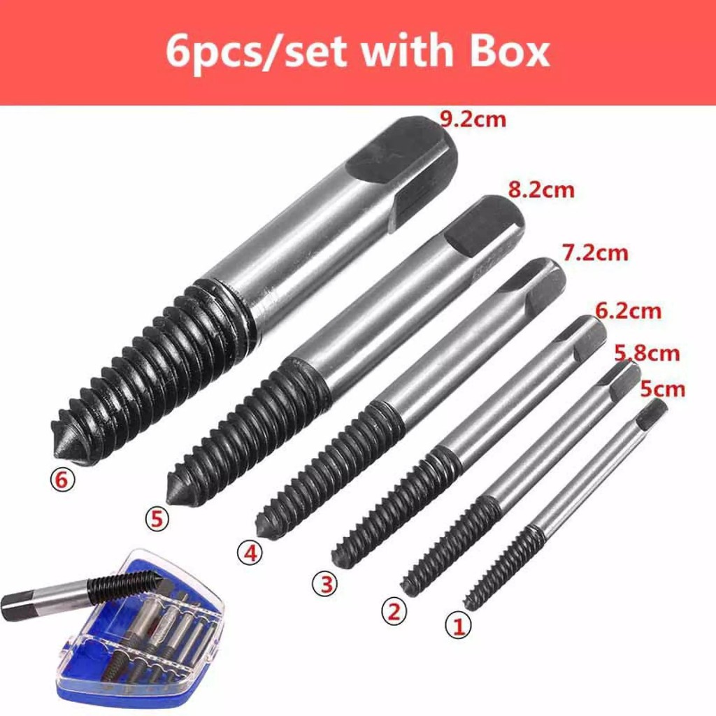 Nhà cửa & Đời sống > Dụng cụ & Thiết bị tiện ích > Dụng cụ > Hộp dụng cụ cầm tay || Bộ 6 đầu lấy vít gãy từ 3-22mm. Dụng cụ tháo ống nước gãy đa năng tiện dụngCòn hàng