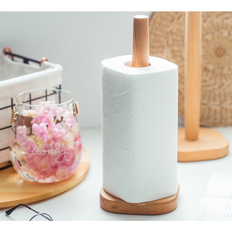 Đế để giấy ăn, cây để giấy ăn nhà bếp gỗ thông tự nhiên có gắn đế chống trượt