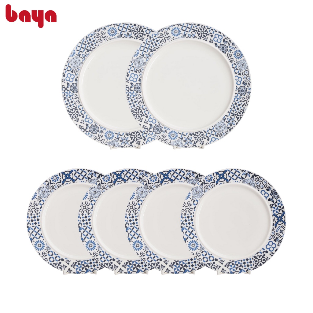 Nhà cửa & Đời sống > Bộ đồ bàn ăn > Dĩa || Bộ 6 Đĩa Sứ Tráng Men Tròn BAYA Alberta Gồm 4 Đĩa Trung, 2 Đĩa Lớn Họa Tiết Màu Xanh Hoài Cổ Hiện Đại 6000244Còn hàng