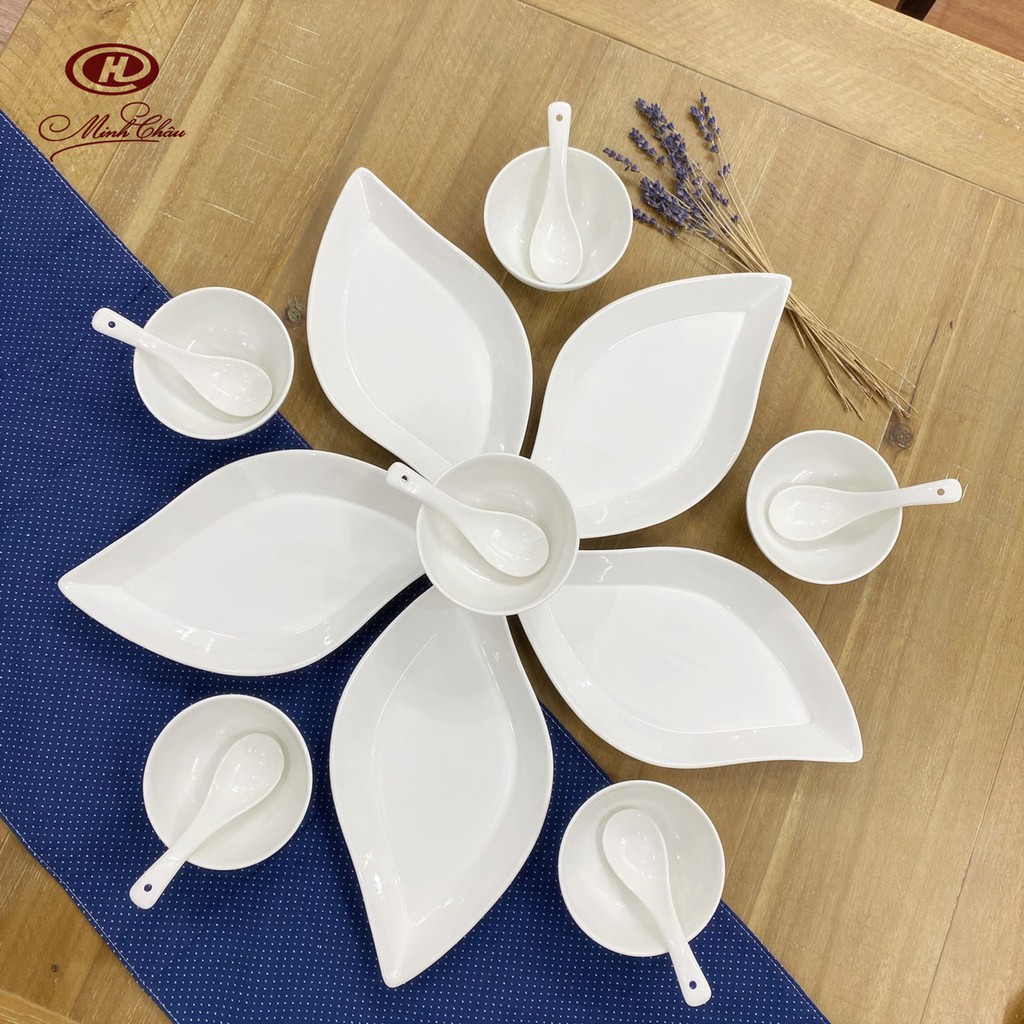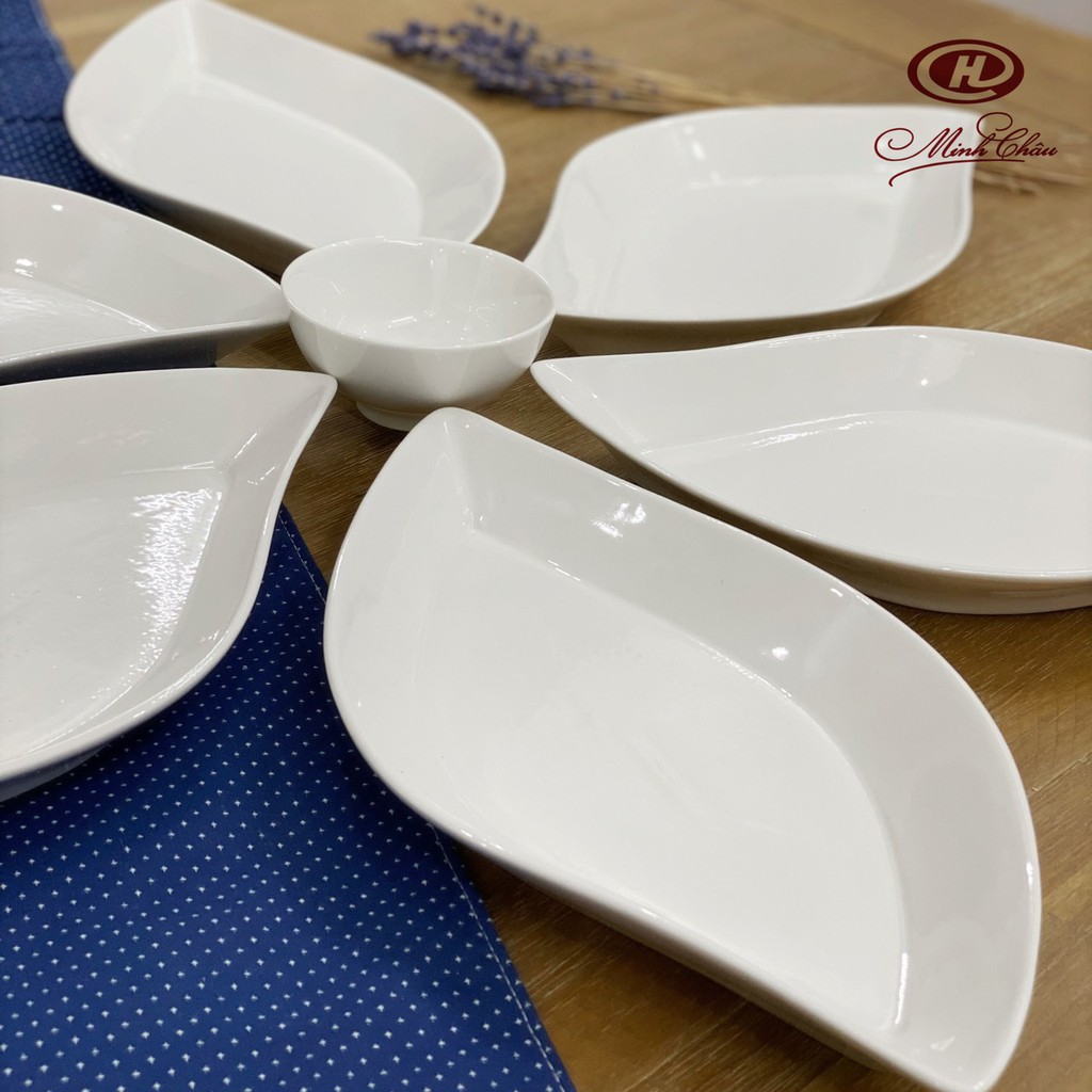 Nhà cửa & Đời sống > Bộ đồ bàn ăn > Dĩa || Bộ 6 Đĩa Trang Trí Hình Lá Trắng Trơn - Sứ Minh Châu - DLA30Còn hàng