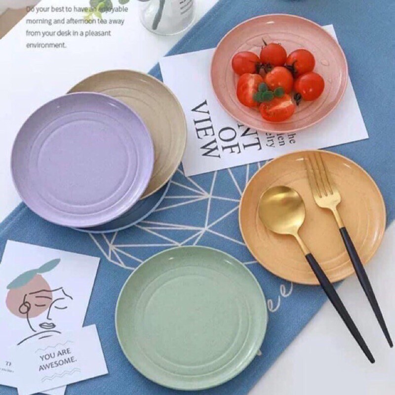 Nhà cửa & Đời sống > Bộ đồ bàn ăn > Dĩa || bộ 6 dĩa tròn mix 6 màu pastel nhựa lúa mạch đựng thức ăn sang trọngCòn hàng