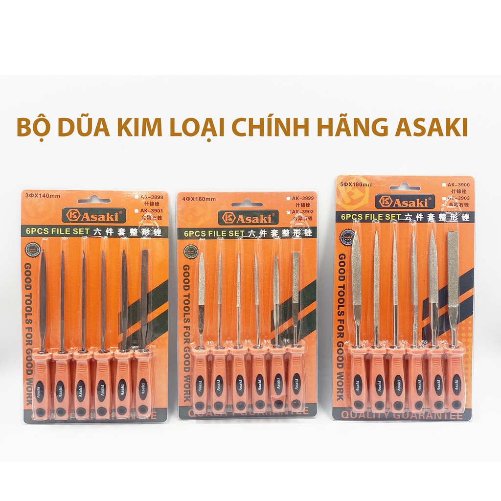 Giới thiệu Bộ 6 dũa mài kim loại hợp kim đa năng chính hãng Asaki các loại 5x180mm AK-3903 4x160mm AK-3902, 3x140mm AK-3898