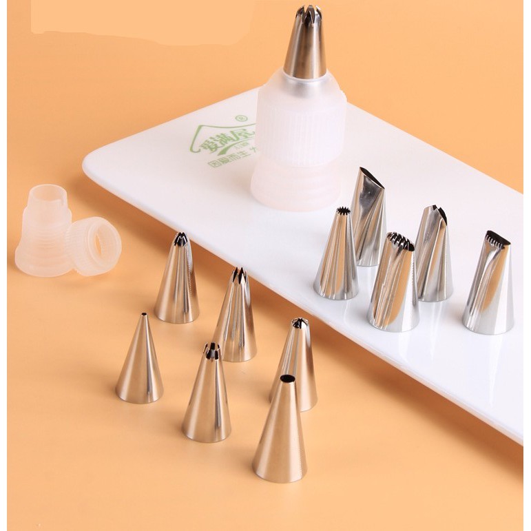 Nhà cửa & Đời sống > Dụng cụ nhà bếp > Dụng cụ nướng & trang trí bánh || 6 Đui bắt kem INOX, gồm đui nối và túi bắt bông, size lớn, size nhỏCòn hàng