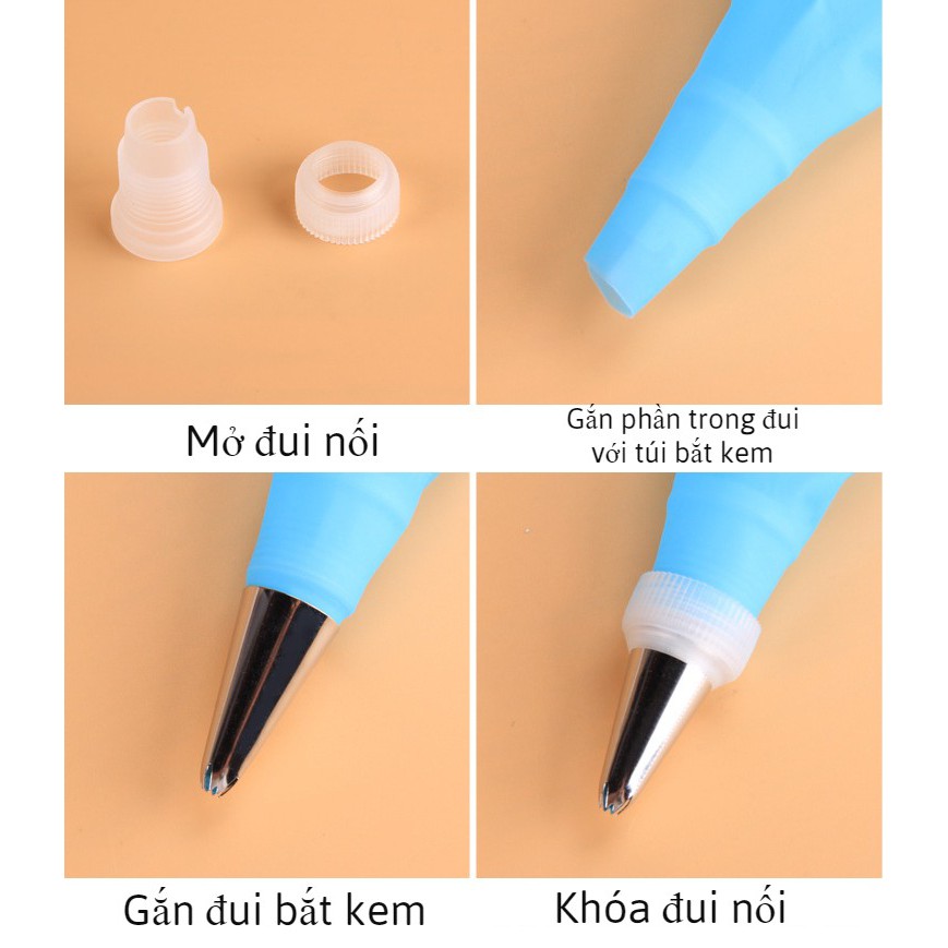 6 Đui bắt kem INOX, gồm đui nối và túi bắt bông, size lớn, size nhỏChất liệu:đui INOX, túi TPU, đui nối nhựa cao cấp