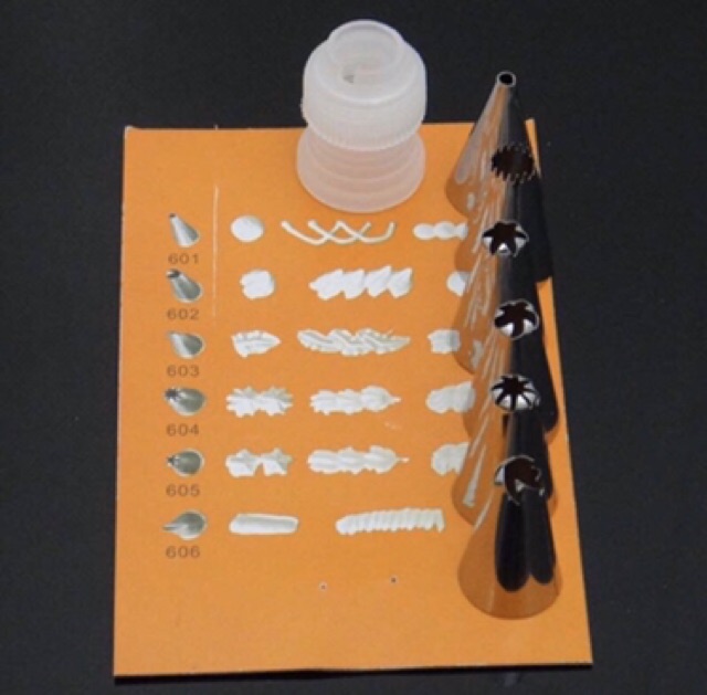 Bộ gồm: 6 đui kem nhỏ, 1 chốt giữ đui