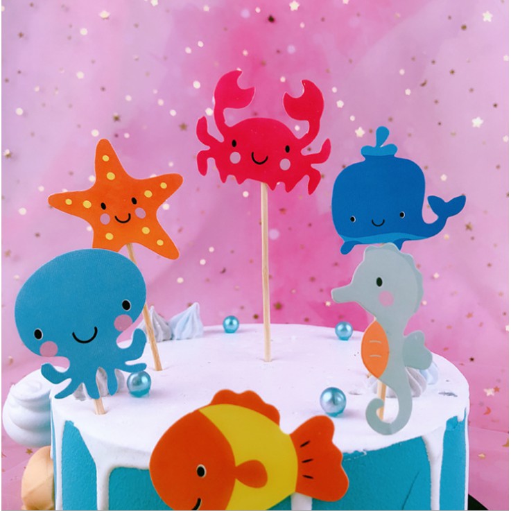 #độngvậtbiển #trangtribanhkem #toppercake #happybirthday #hìnhcắmgiấy