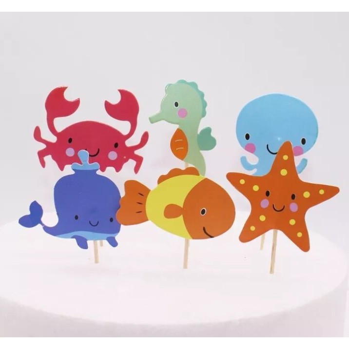 - Gồm 6 hình cắm động vật biển đáng yêu: sao biển, cua, cá, bạch tuộc,...