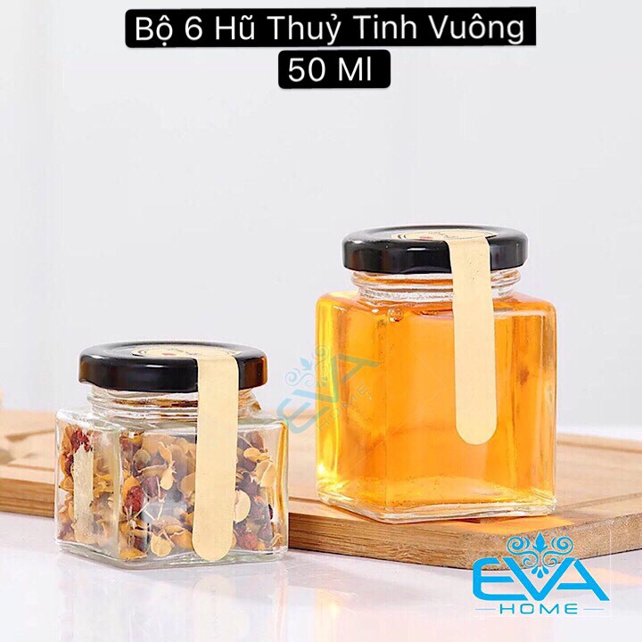 Bộ 6 Hũ Thủy Tinh Vuông Nắp Vặn Dung Tích 50 MlMã Sản Phẩm : 0036001029
