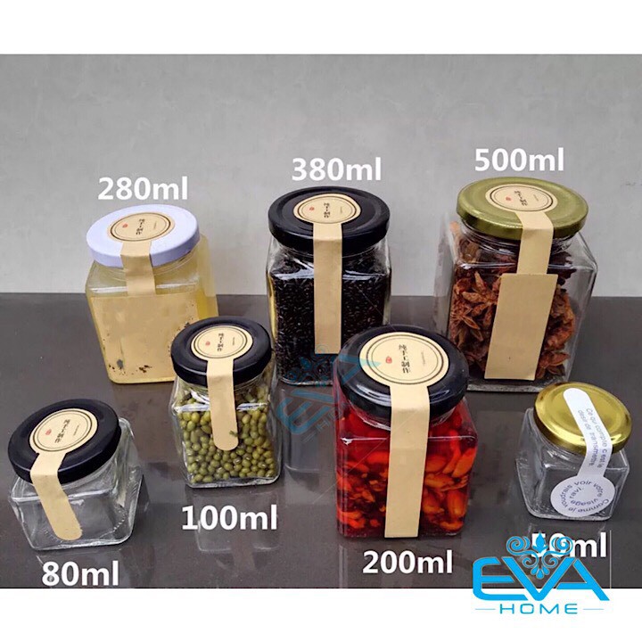 - *** Hũ thuỷ tinh kiểu dáng vuông gồm có các loại dung tích như sau cho bạn lựa chọn
