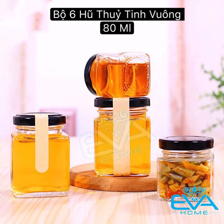 Bộ 6 Hũ Thủy Tinh Vuông Nắp Vặn Dung Tích 80 ML
