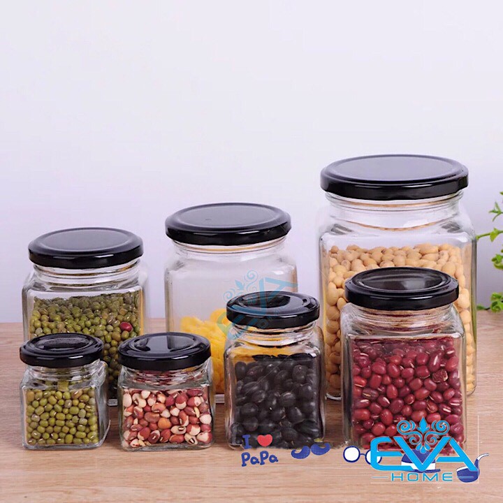 - Hủ thủy tinh vuông Dùng đựng thực phẩm : Bánh kẹo, Thực phẩm khô, Các loại hạt, Ngâm dưa cải, đồ chua,..