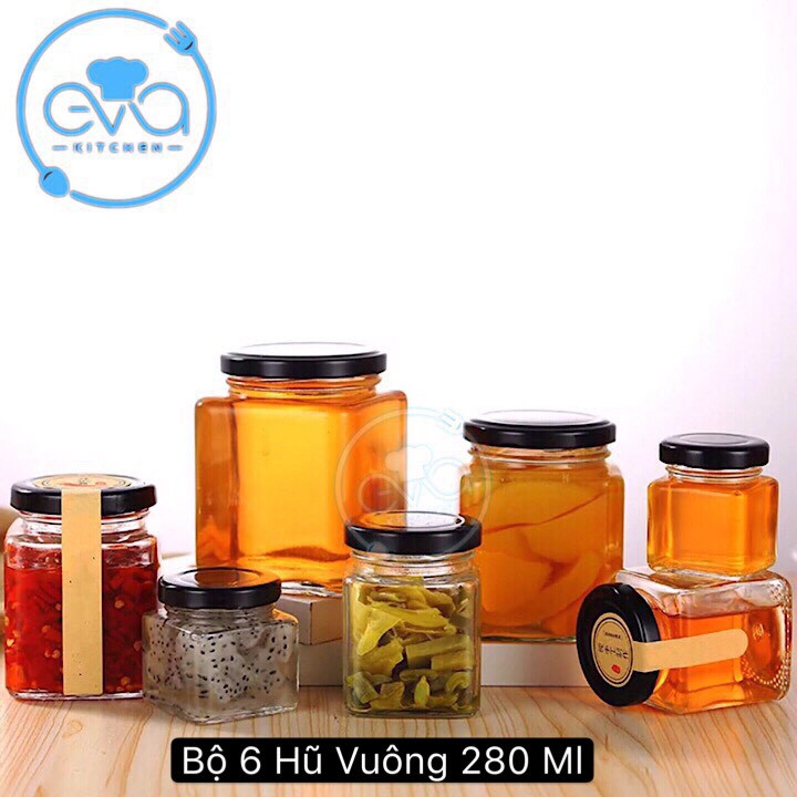 Bộ 6 Hũ Thủy Tinh Vuông Nắp Vặn Dung Tích 280 ML