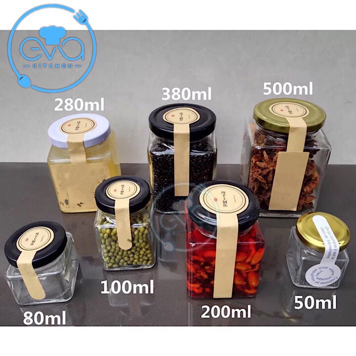 - *** Hũ thuỷ tinh kiểu dáng vuông gồm có các loại dung tích như sau cho bạn lựa chọn