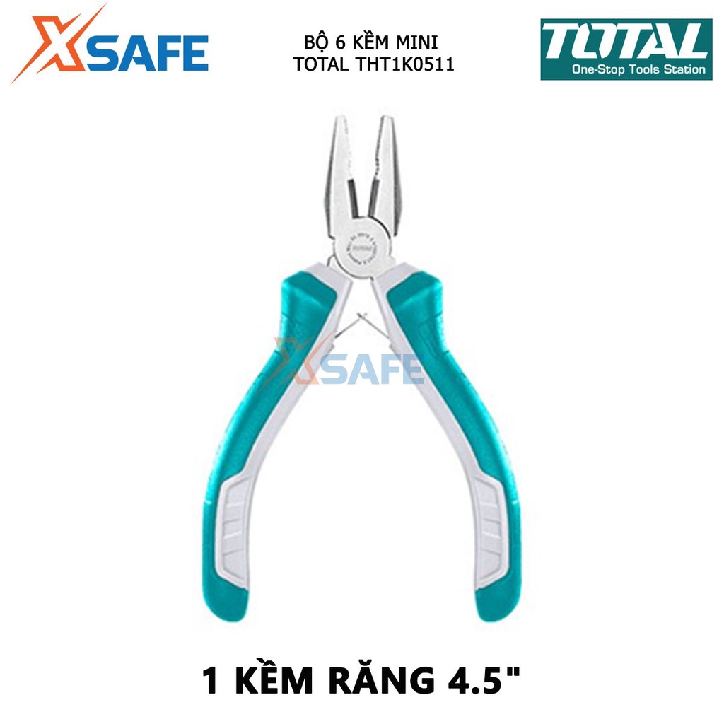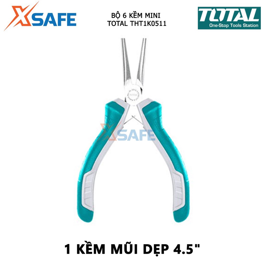 Bộ 6 kềm mini làm trang sức TOTAL THT1K0511 bộ kìm đa năng gồm 6 chi tiết răng 4.5”, cắt 4.5”, cắt đứt 4.5”, mũi dài 4.5