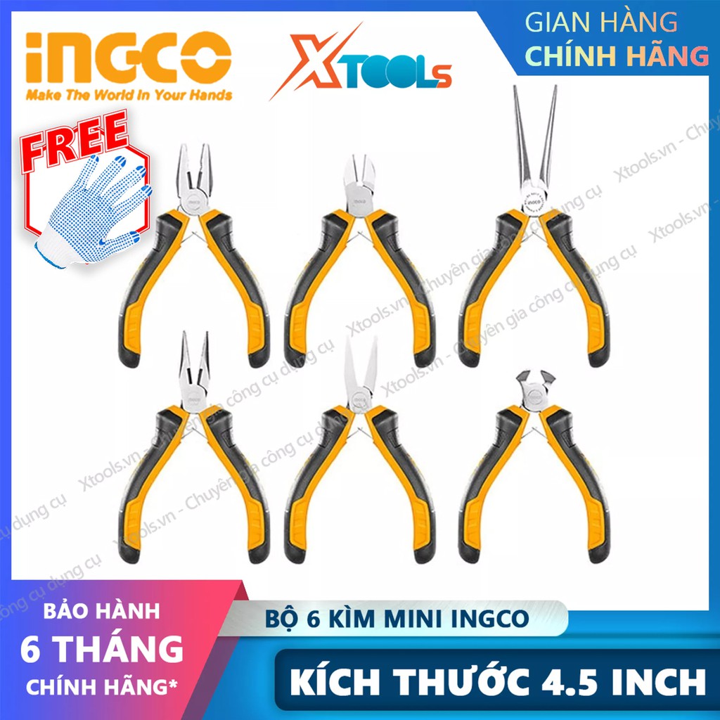 Bộ 6 kìm mini đa năng cách điện INGCO bộ kìm mini làm trang sức, linh kiện điện tử, chất liệu thép siêu cứng bền sắc bén