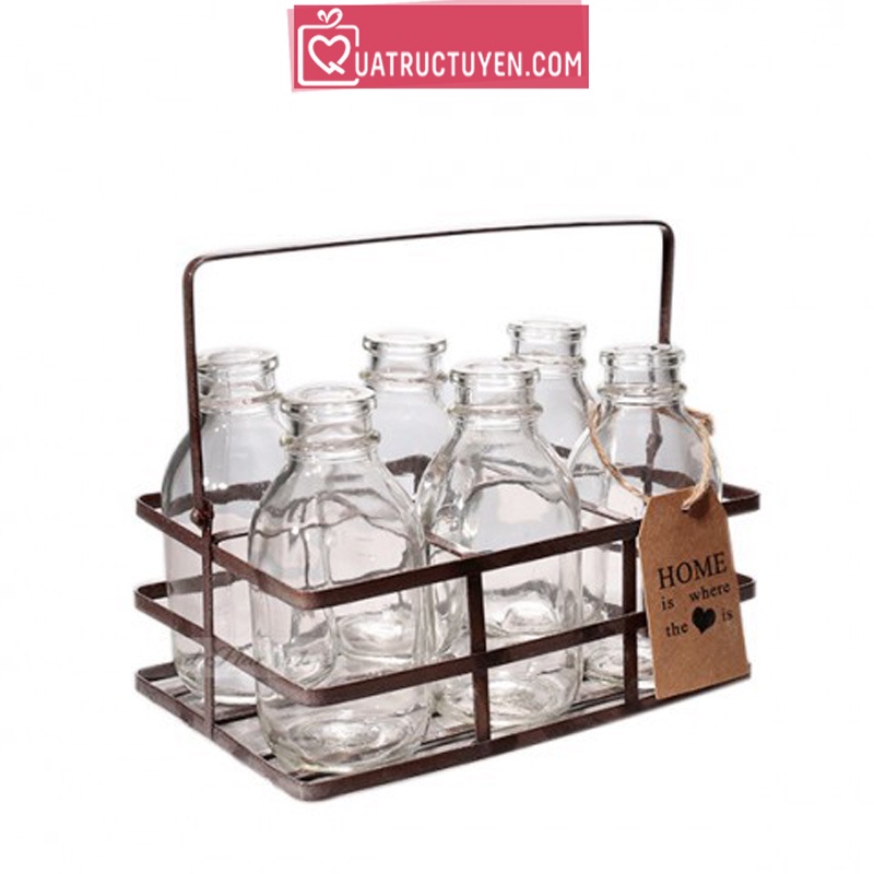 Bộ 6 lọ hoa thủy tinh giá sắt trang trí phòng khách, bàn làm việc, quà tặng tân gia