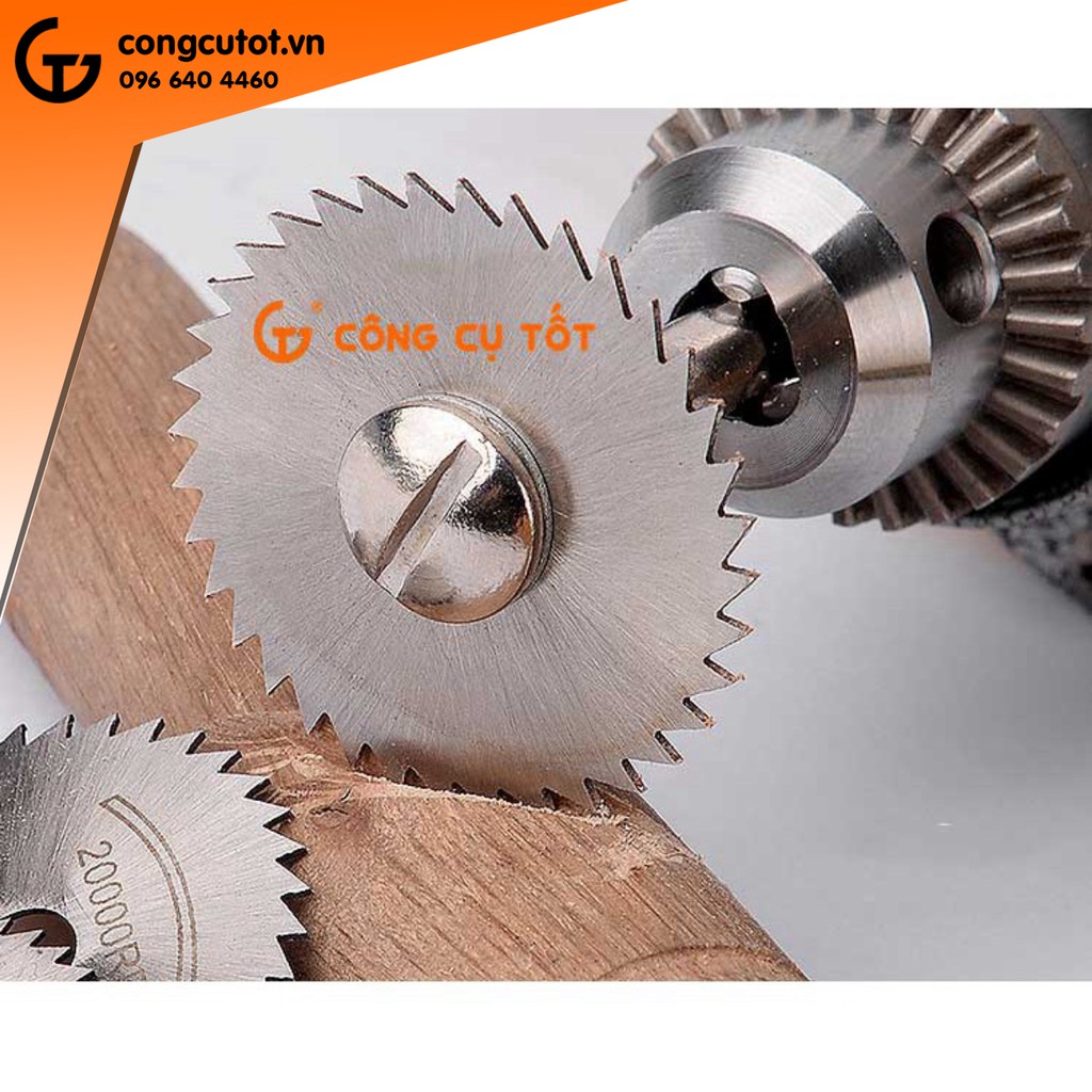 Nếu bạn ham thích mỹ nghệ hoặc DIY thì chắc bạn cần một công cụ cắt nhỏ, với bộ 6 đĩa cưa mini đường kính chỉ từ 22mm đến 50 mm nối với máy khoan, máy mài khắc là bạn đã có thể dùng để cắt gỗ, nhựa, nhôm, mạch in và một số vật liệu có độ cứng không cao khác. Các đĩa cưa mini được làm từ thép gió HSS và có thê chịu được tốc độ vòng quay đến 20000 vòng phút.Bộ 6 lưỡi cưa: 22, 25, 32, 35, 44, 50 (mm).
