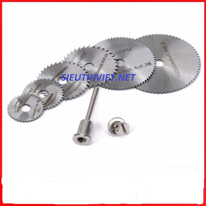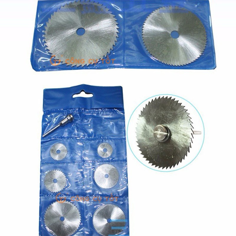 Một bộ gồm 6 đĩa cắt và 1 trục giữ đĩa.