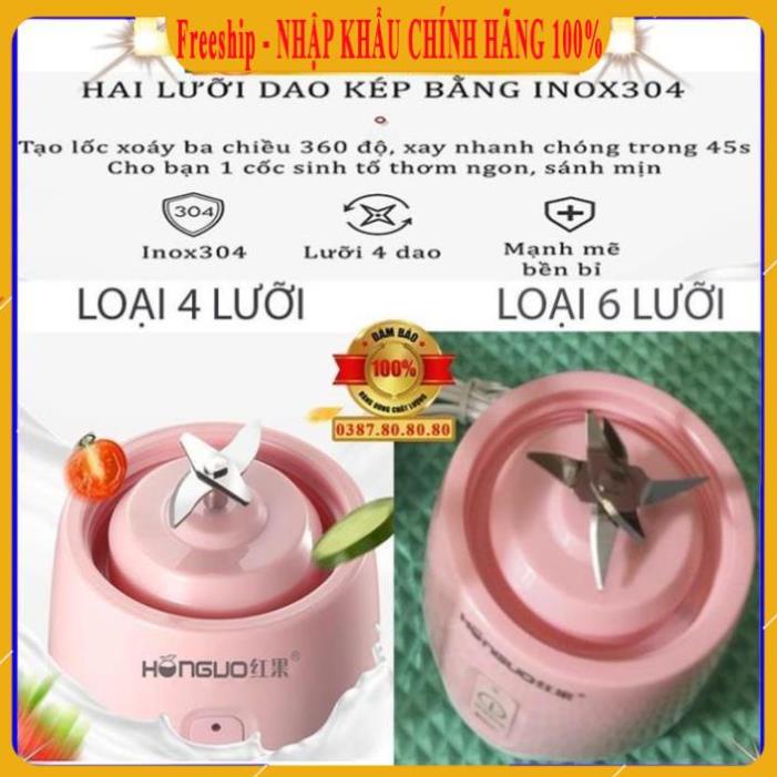 [ 6 LƯỠI - HÀNG ĐẸP ] Máy xay sinh tố mini cầm tay sạc điện/ Máy xay cầm tay đa năng, xay hoa quả, xay tỏi ớt Honguo