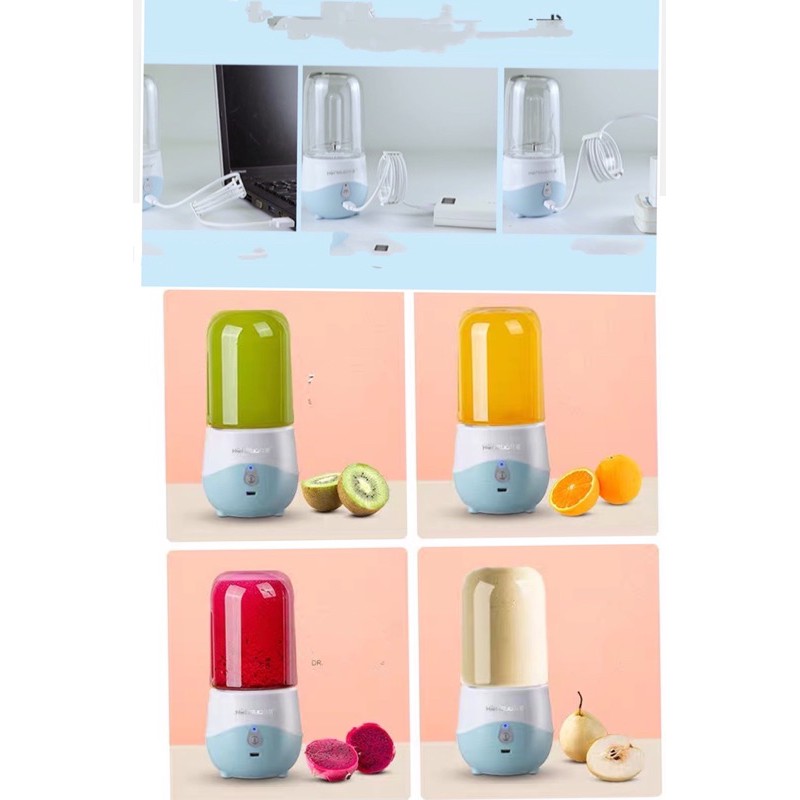 Máy say sinh tố cầm tay mini sạc pin Có cổng cắm USB, dùng điện từ máy tính hoặc thiết bị tích điện, tự ngắt điện.
