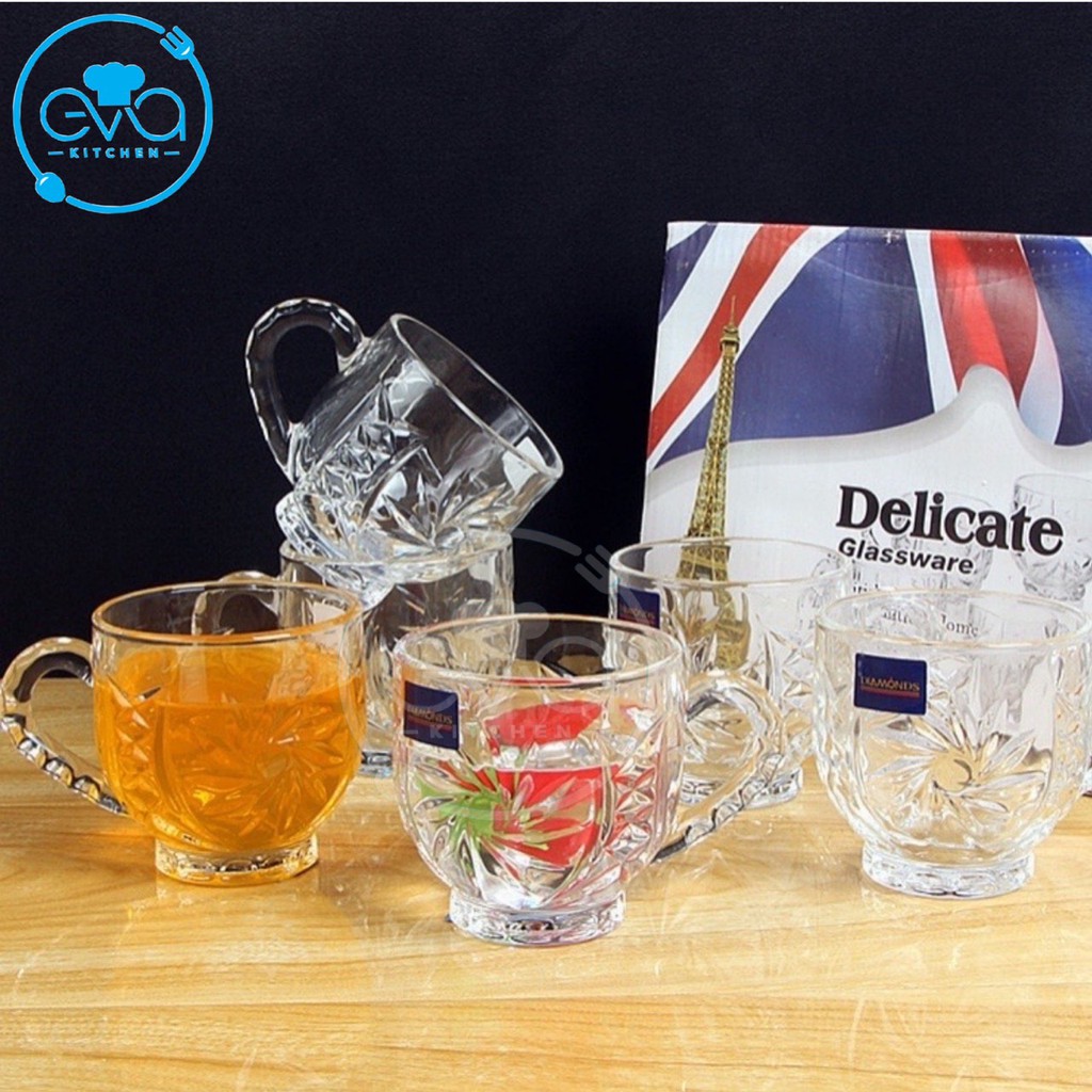 - Sản phẩm gồm : 6 ly thuỷ tinh có quai cầm theo phân loại hoặc ngẫu nhiên