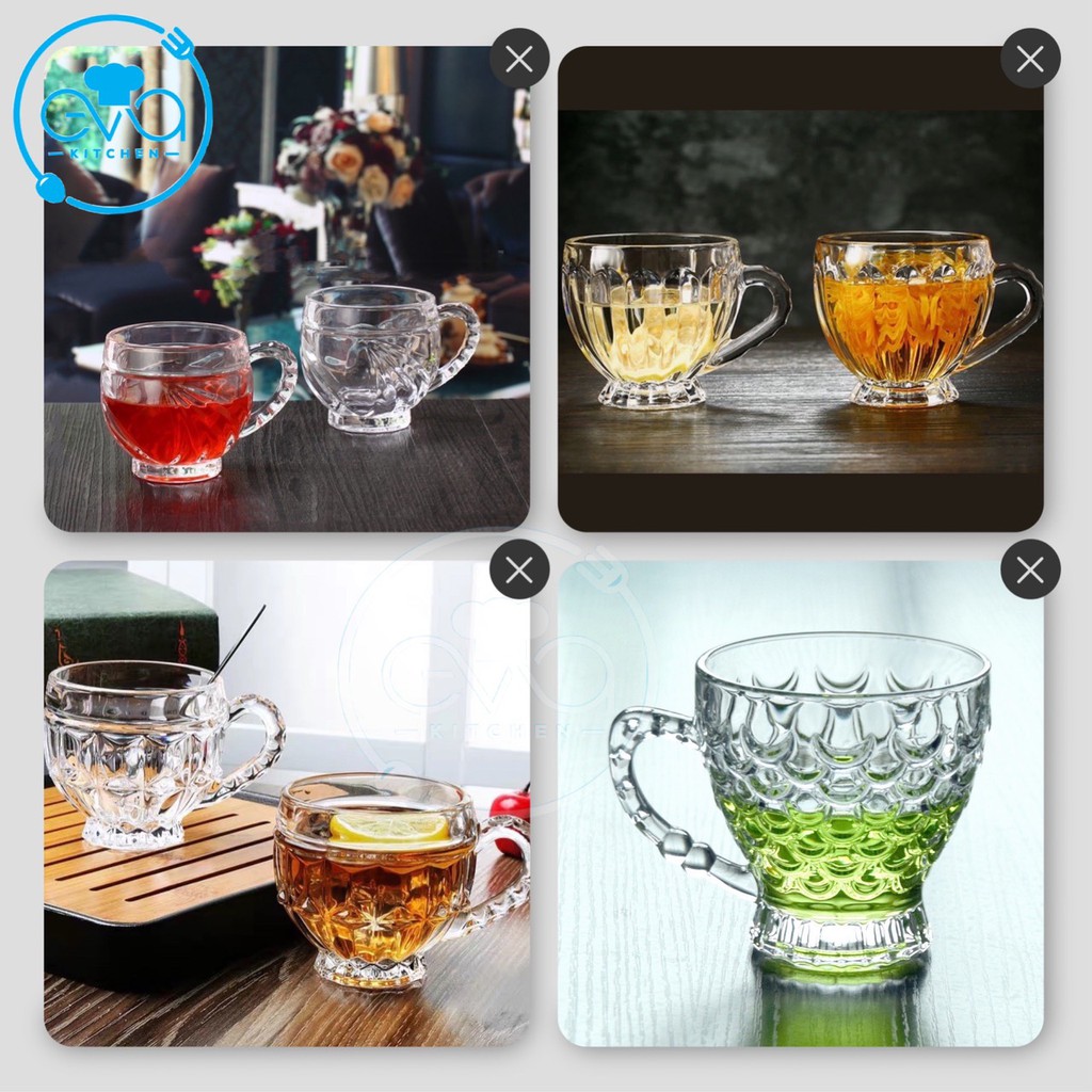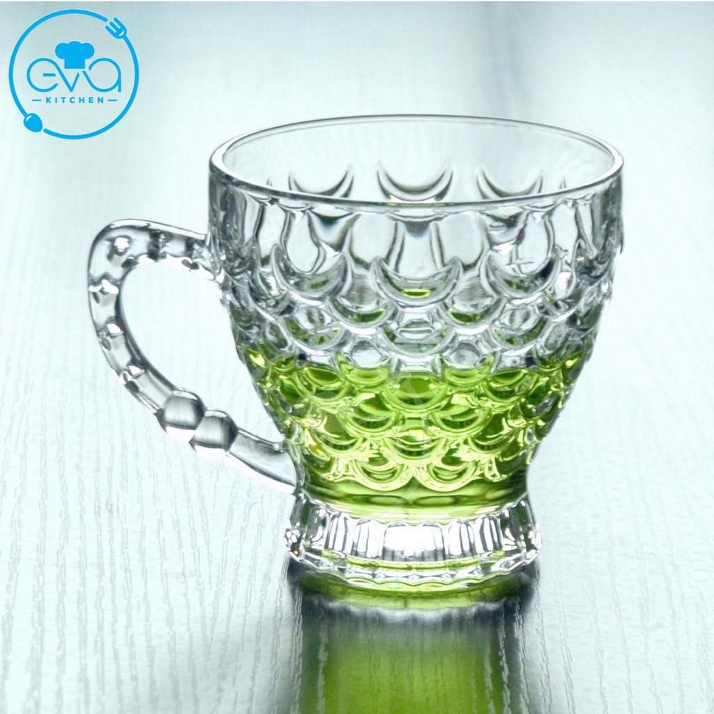 - Công Dụng : tách trà thuỷ tinh Trong suốt sáng trọng nên Màu sắc của nước trà, cánh trà, hoa trà hay lớp sương khói mờ ảo cũng được thể hiện toàn bộ bên trong lớp thủy tinh trong suốt, mang lại một cảm quan duy mĩ, cảm giác thư thái cho việc thưởng trà. hoạ tiết vẩy cá và quai cầm trạm khắc chống trượt và làm cho tách trà thêm sang trọng và bắt mắt