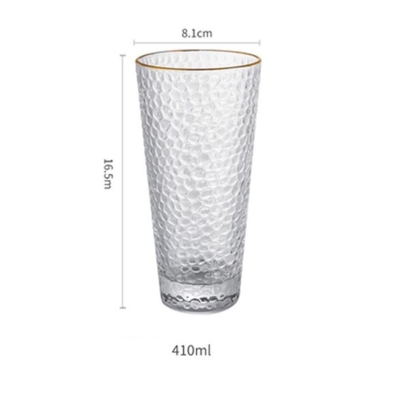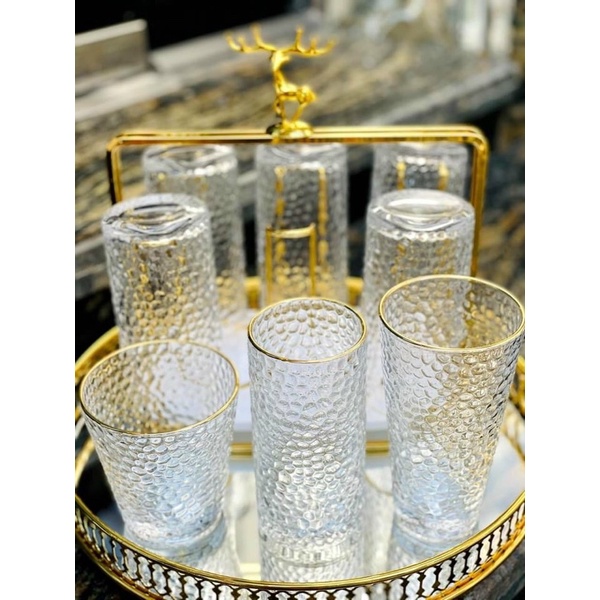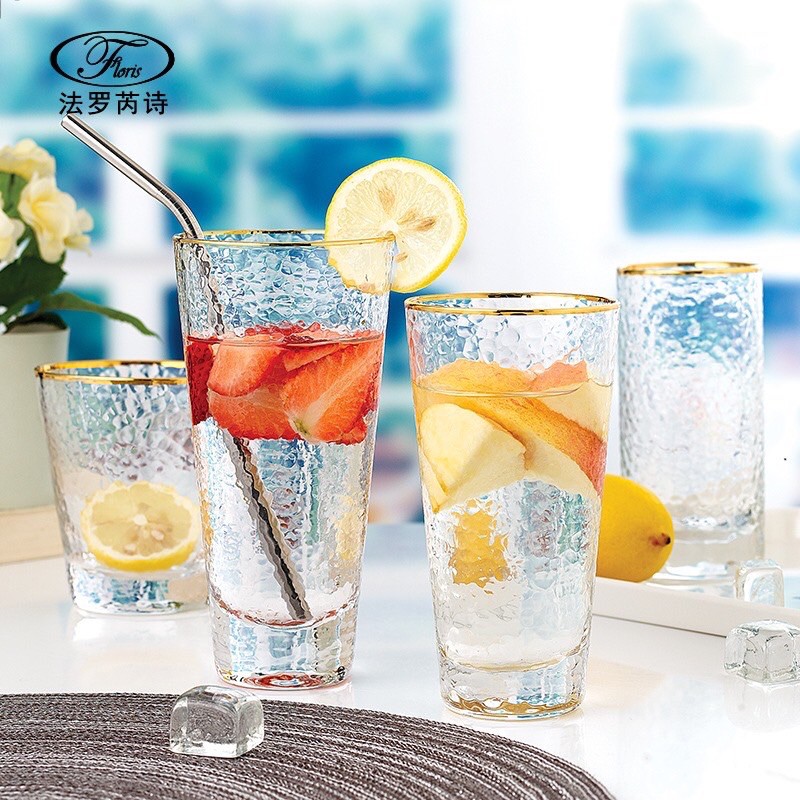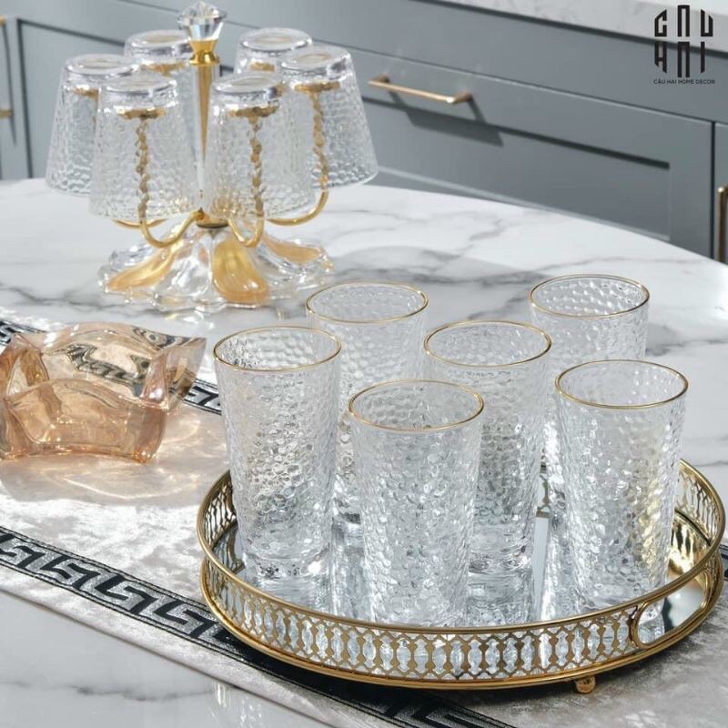 Bộ 6 ly thủy tinh loe cao vân nhám viền vàng - THUỶ TINH HONGLI