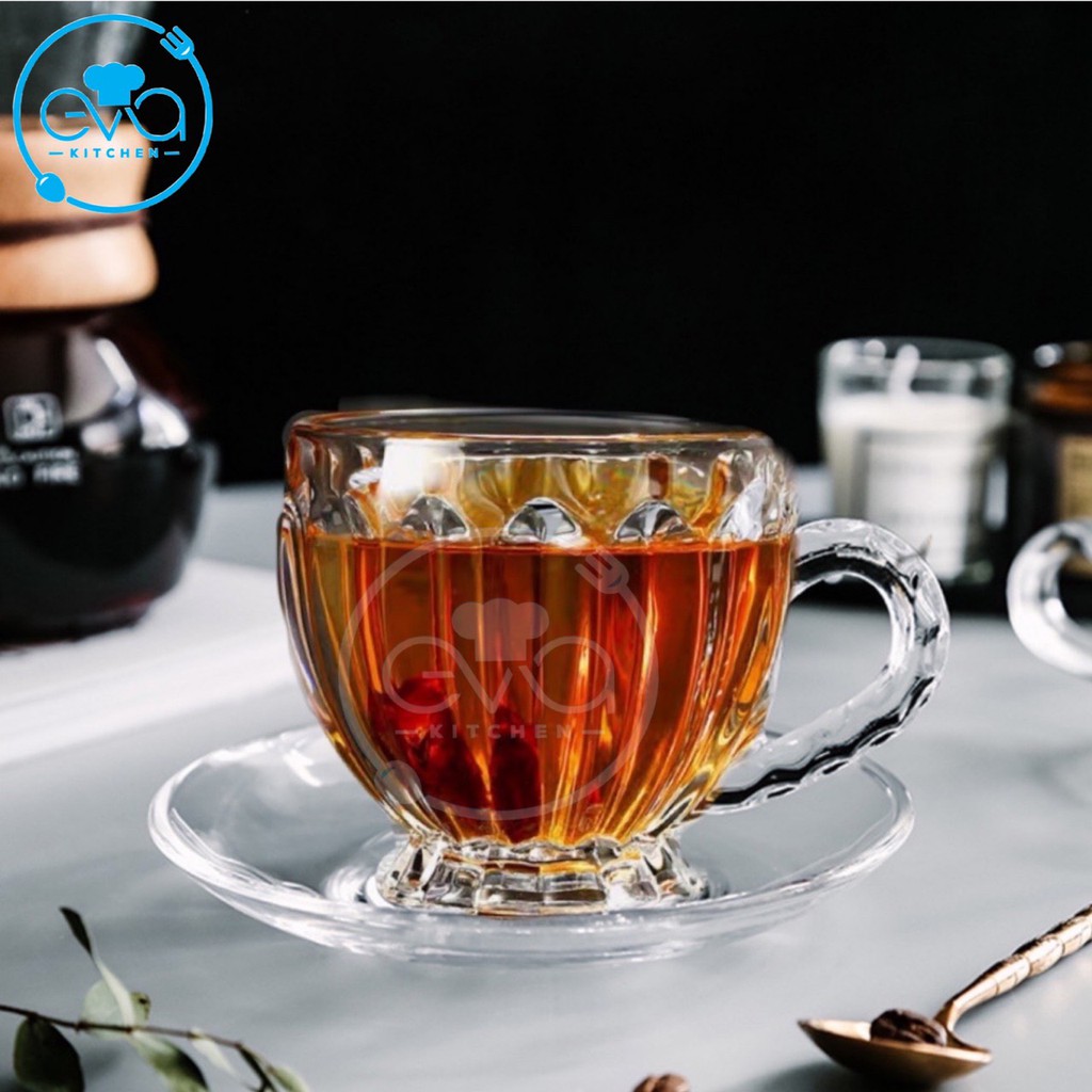 Bộ 6 Ly Và 6 Đĩa Thuỷ Tinh Pha Lê Quai Cầm Nhiều Mẫu Hoạ Tiết Sang Trọng M3464