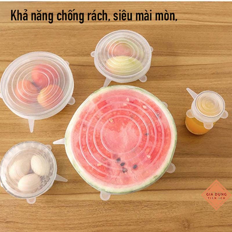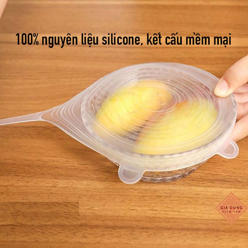 Bộ 6 Màng bọc silicon co giãn - nắp đậy silicon siêu dai, bọc tô chén bát và bảo quản thực phẩm đơn giản
