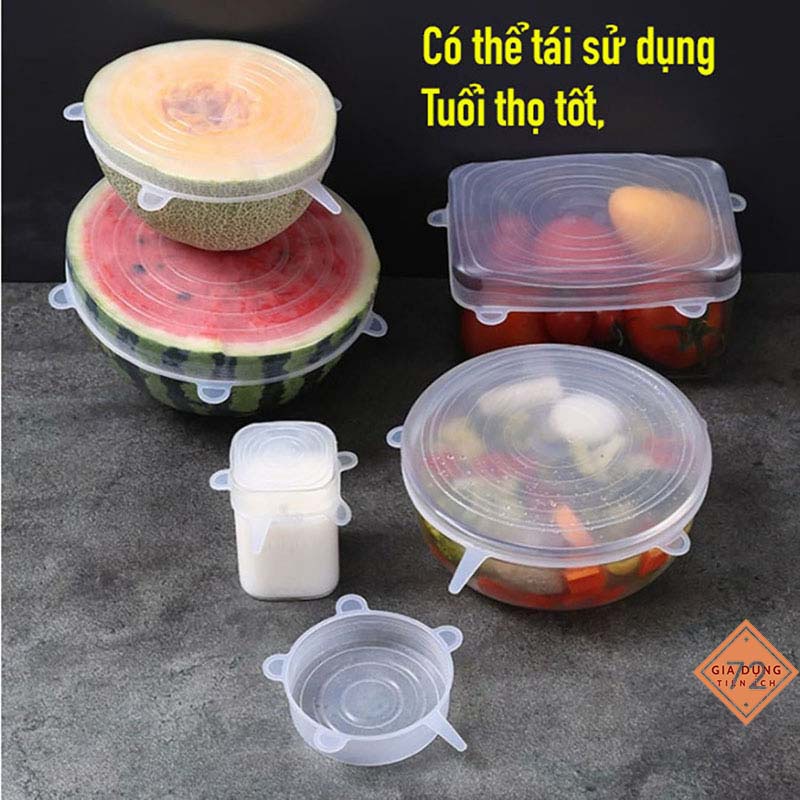 NẮP BỌC THỰC PHẨM SILICONE AN TOÀN - GIẢI PHÁP BẢO VỆ SỨC KHOẺ VÀ MÔI TRƯỜNGBỘ 6 MIẾNG - HÀNG LOẠI 1 DÀY VÀ DAI HƠN CÁC LOẠI HÀNG GIÁ RẺ (100 gr)