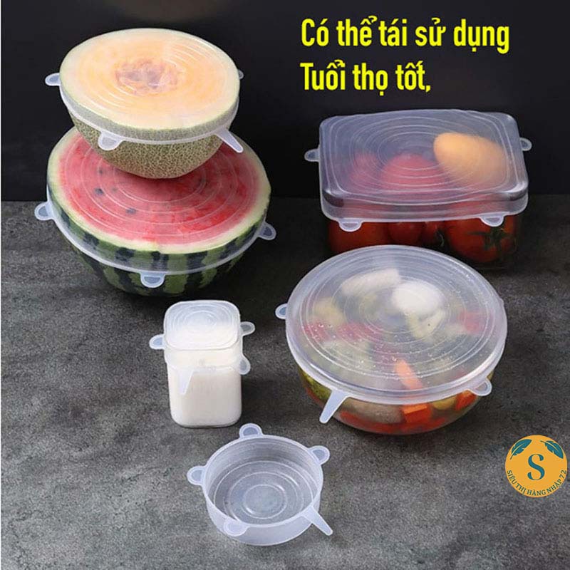 Nhà cửa & Đời sống > Bộ đồ bàn ăn > Lồng bàn || Bộ 6 Màng bọc silicon nắp đậy silicon siêu dai,bọc tô chén bát và bảo quản thực phẩm [NẮP SILICON]Còn hàng