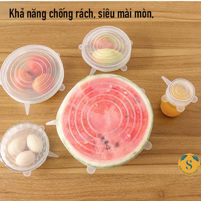 ✔️ Công dụng của những chiếc nắp đậy này tương tự như màng bọc thực phẩm nilong quen thuộc, bao bọc miệng của nhiều loại bát, bình, đĩa, cốc và cả nửa trái cây sau khi cắt.