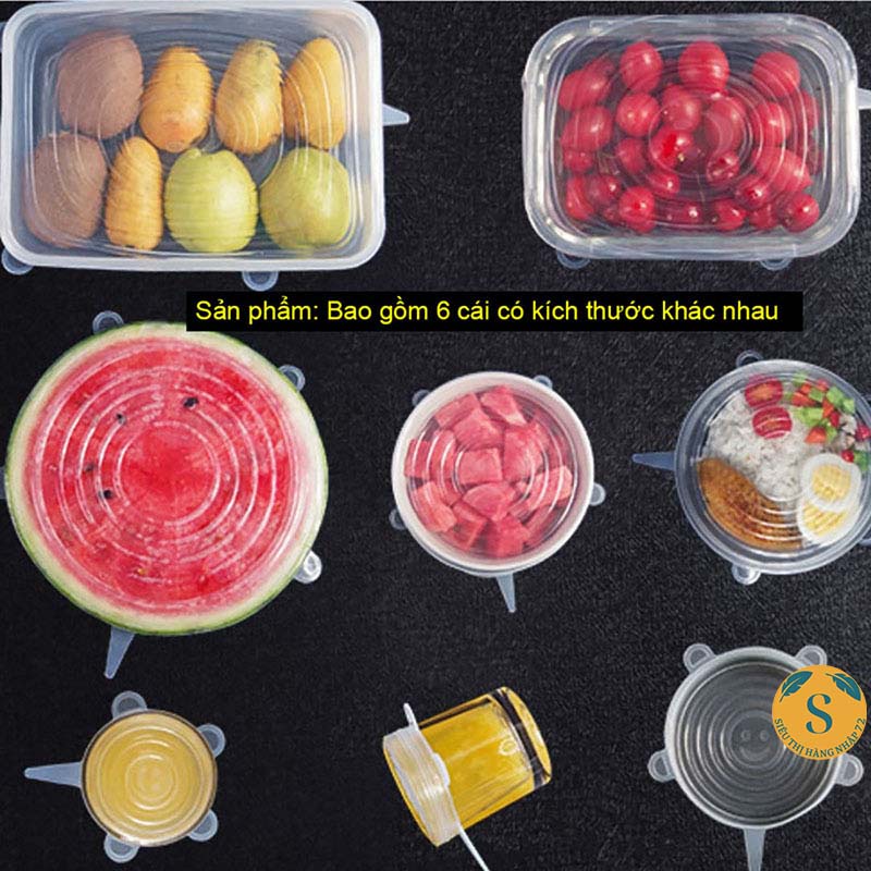 ❎ Bộ 6 Nắp Đậy Silicon Co Giãn Thay Thế Màng Bọc Thực PhẩmCăn bếp của các gia đình luôn có cả lố hộp nhựa rồi thuỷ tinh để đựng bảo quản thức ăn. Nhưng đôi lúc các bà nội trợ vẫn phải sử dụng màng bọc thực phẩm để bảo quản một số loại hoa quả, bát canh thừa hay khi hộp đựng bị mất nắp. Nếu cảm thấy ngán ngẩm với cả đống hộp đựng lộn xộn mất nắp và muốn hạn chế dùng bọc nilong độc hại thì Bộ 6 nắp đậy silicon co giãn chính là giải pháp mà bạn đang tìm kiếm.