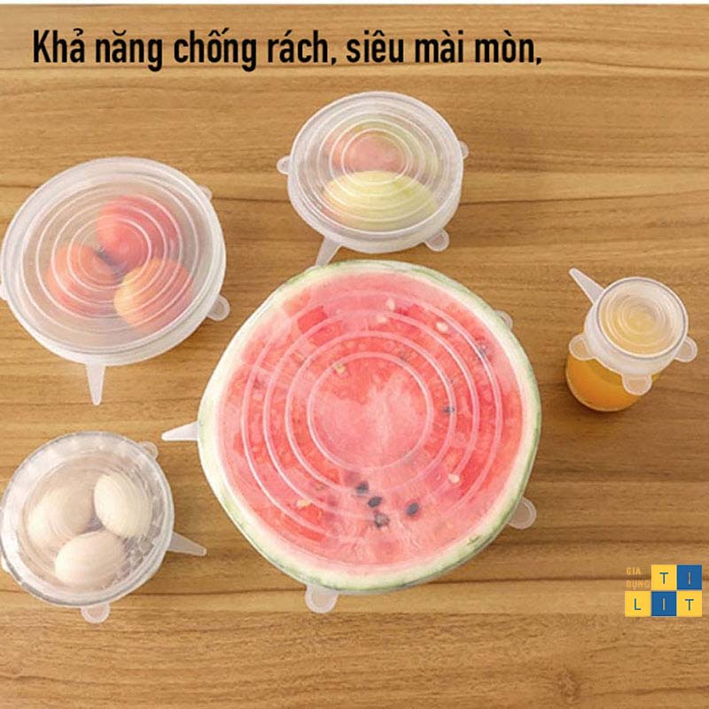 🍀🍀BỘ 6 MÀNG BỌC THỰC PHẨM SILICON BỀN ĐẸP, ĐẬY THỨC ĂN, BẢO QUẢN ĐỒ ĂN TIỆN TÍCH, THÔNG MINHCăn bếp của các gia đình luôn có cả lố hộp nhựa rồi thuỷ tinh để đựng bảo quản thức ăn. Nhưng đôi lúc các bà nội trợ vẫn phải sử dụng màng bọc thực phẩm để bảo quản một số loại hoa quả, bát canh thừa hay khi hộp đựng bị mất nắp. Nếu cảm thấy ngán ngẩm với cả đống hộp đựng lộn xộn mất nắp và muốn hạn chế dùng bọc nilong độc hại thì Bộ 6 nắp đậy silicon co giãn chính là giải pháp mà bạn đang tìm kiếm.