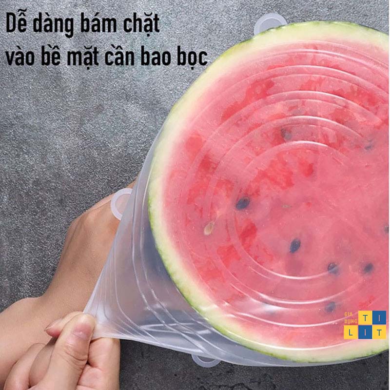 ✔️ Chất liệu silicon cho phép chiếc nắp đậy này dễ dàng bám chặt vào bề mặt cần bao bọc, bất kể là hộp bát thủy tinh, nhựa, sứ hay vỏ trái cây tươi như cam, dưa hấu.