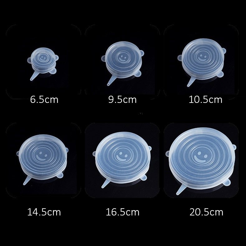 Bộ 6 Màng Bọc Thực Phẩm Silicon Nhiều Kích Thước Bảo Quản Thực Phẩm An Toàn Vệ Sinh