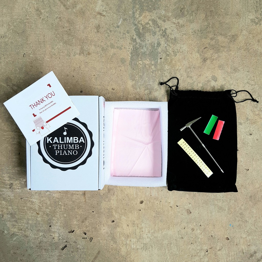 🎁 Quà tặng kèm theo: Búa chỉnh âm. 2 bọc cao su bảo vệ ngón tay cái, Các miếng dán màu, khăn lau, túi nhun đựng Kalimba, Hộp carton chống sock cực tốt. (Như ảnh trên).