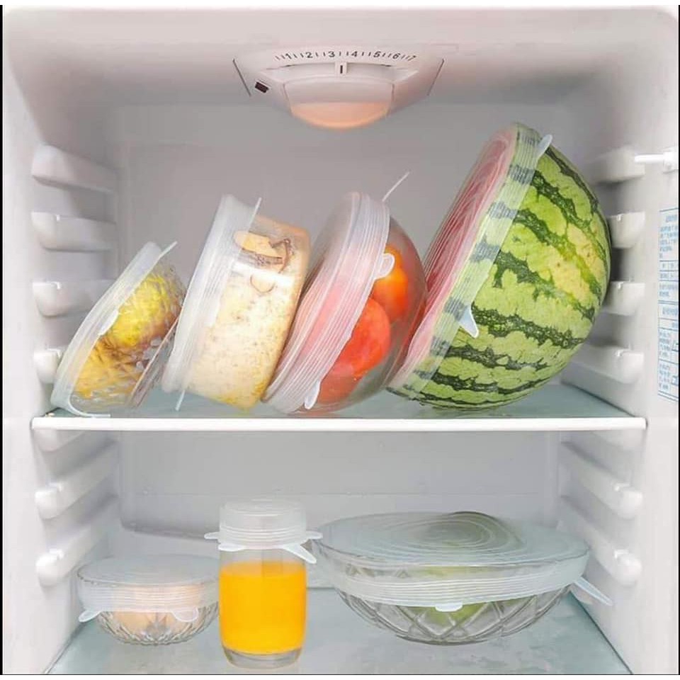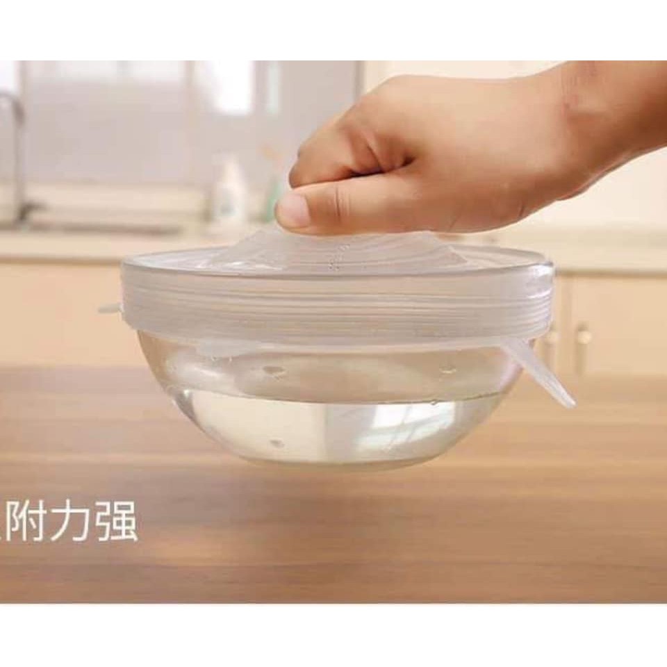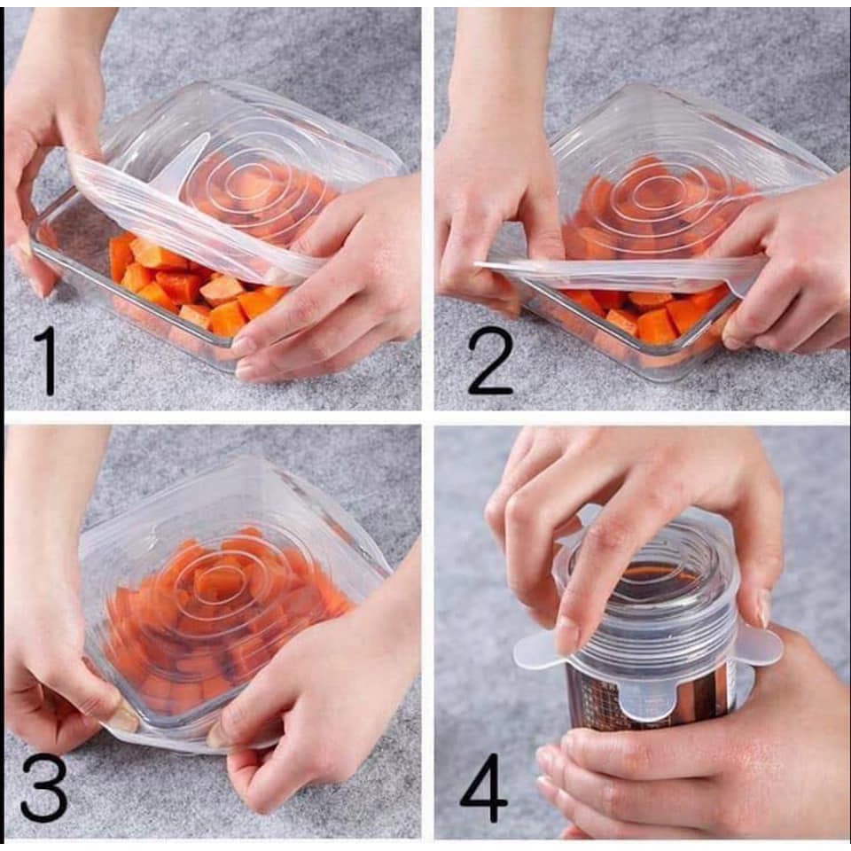Bộ gồm 6 nắp kích thước từ bé đến lớn, đảm đảo có thể đậy được từ bát nhỏ đến bát lớn, cực kín , cực khít luôn.