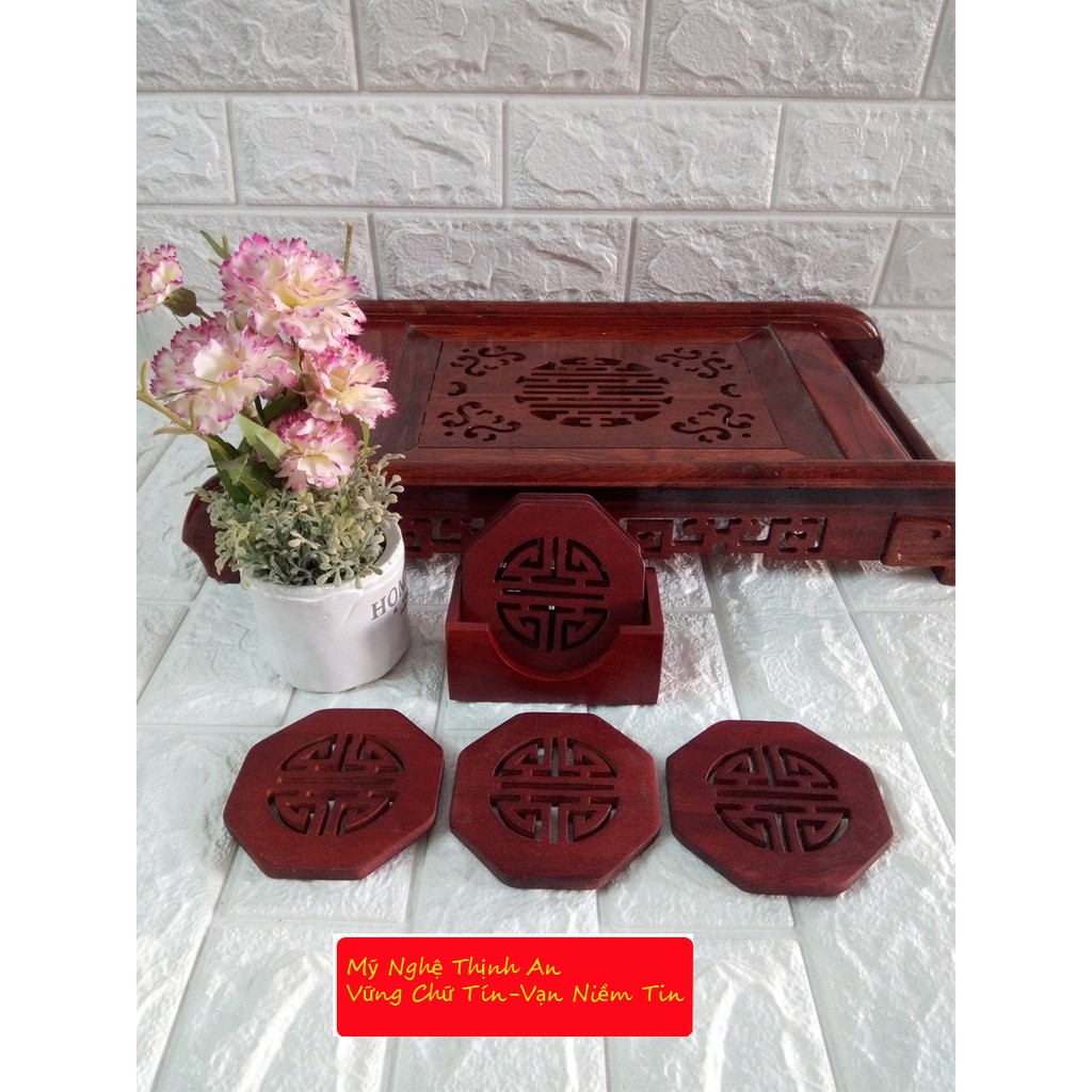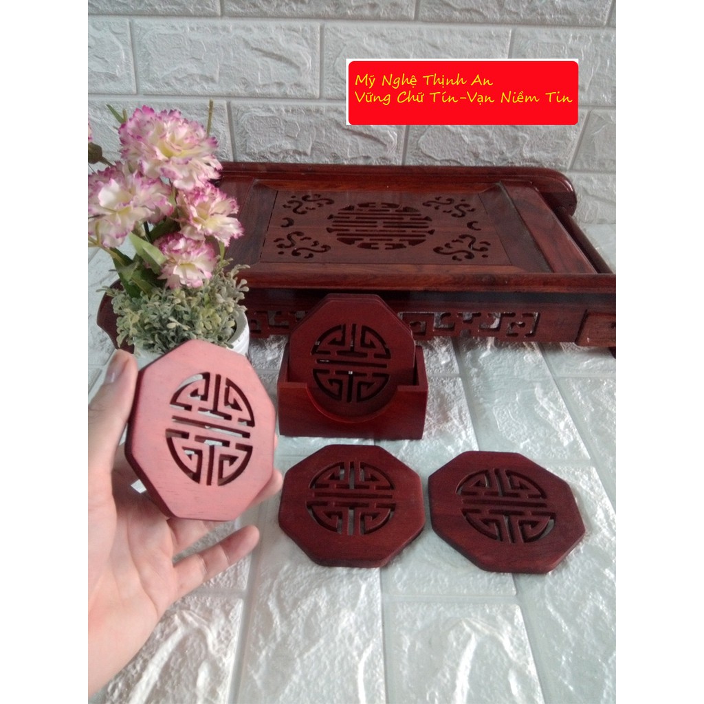 Nhà cửa & Đời sống > Bộ đồ bàn ăn > Khay, tấm lót bàn ăn || Bộ 6 miếng đế lót ly hình bát giác gỗ hương lọng chữ thọ - LLBG03Còn hàng