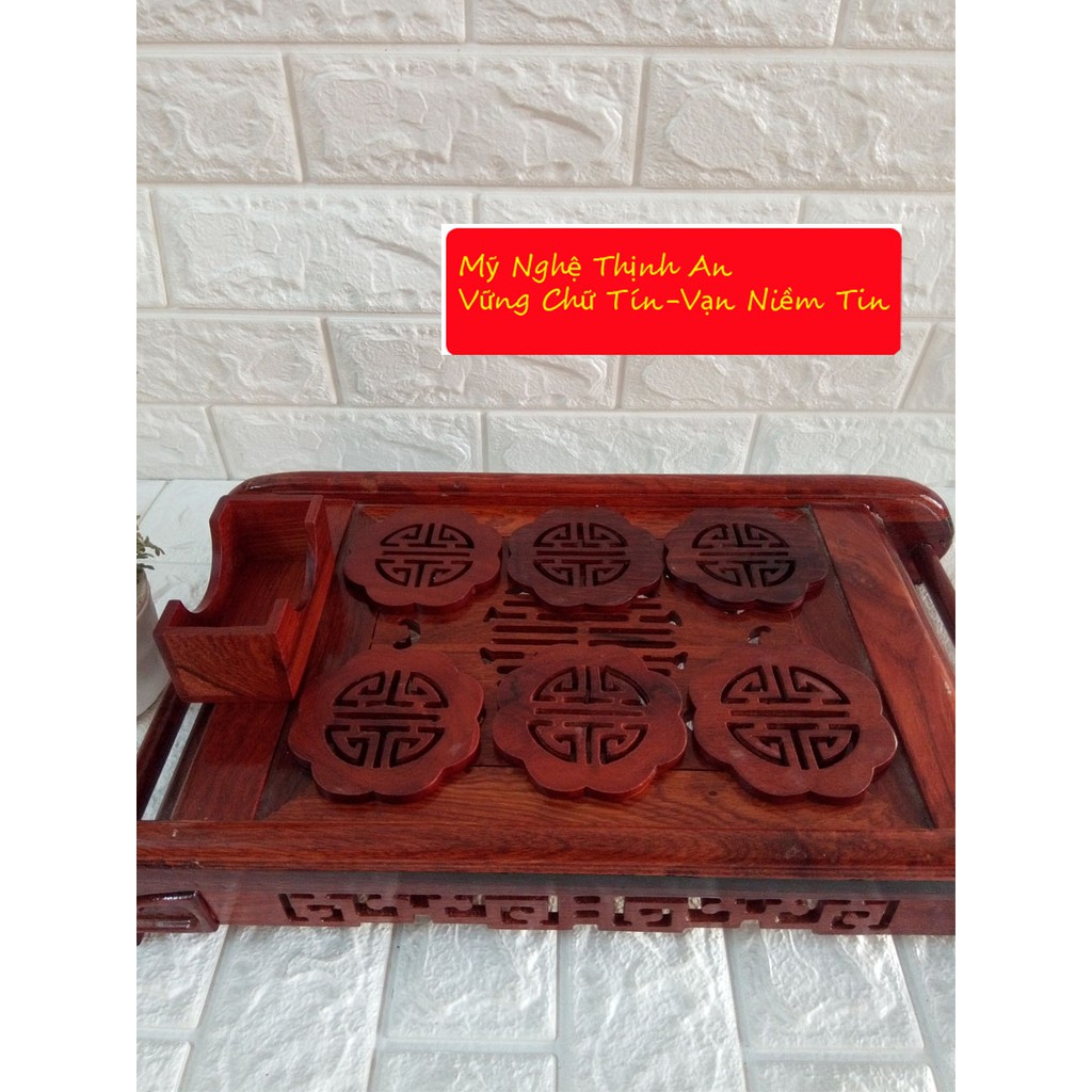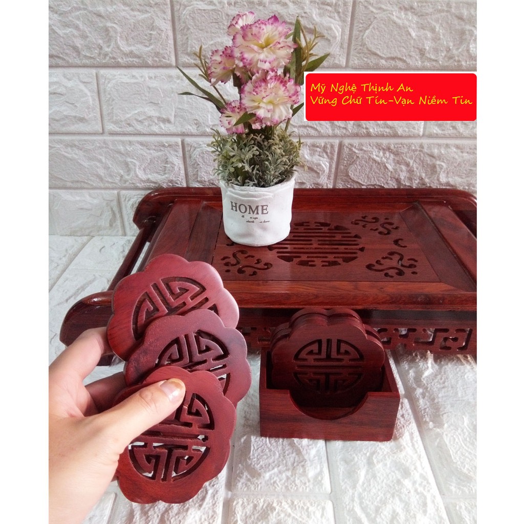 Nhà cửa & Đời sống > Bộ đồ bàn ăn > Khay, tấm lót bàn ăn || Bộ 6 miếng đế lót ly hình hoa mai gỗ hương lọng chữ thọ - LLHM02Còn hàng