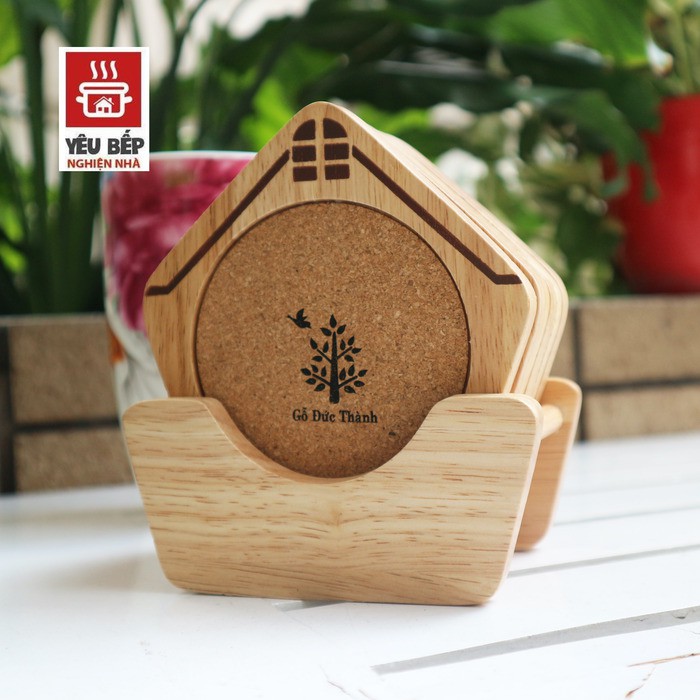 Nhà cửa & Đời sống > Bộ đồ bàn ăn > Khay, tấm lót bàn ăn || Bộ 6 Miếng Lót Ly (Cốc) Hình Ngôi Nhà Tặng Kèm Đế Đựng Miếng Lót Tiện Dụng 27171 - Gỗ Đức ThànhCòn hàng