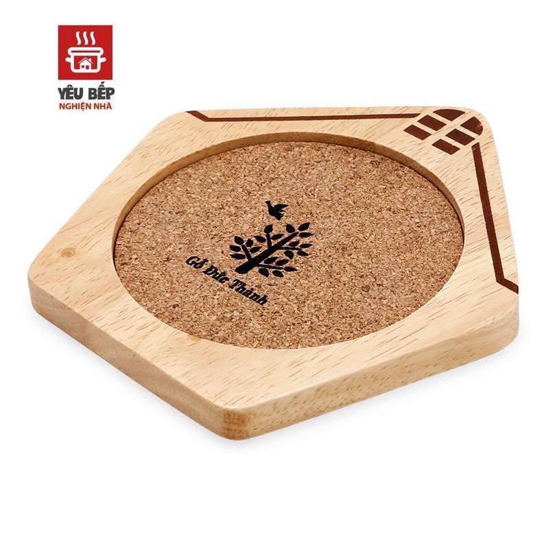 - Được làm từ gỗ cao su, bề mặt miếng lót được thiết kế các đường vân nổi để tạo ma sát với đế ly.