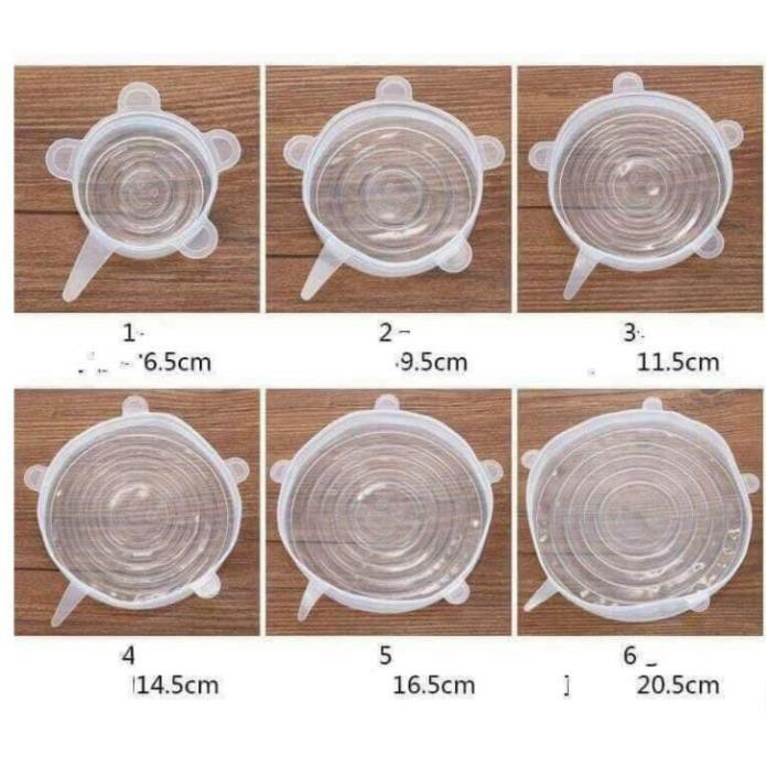 Bộ 6 Miếng Màng Bọc Thực Phẩm Silicon Co Giãn