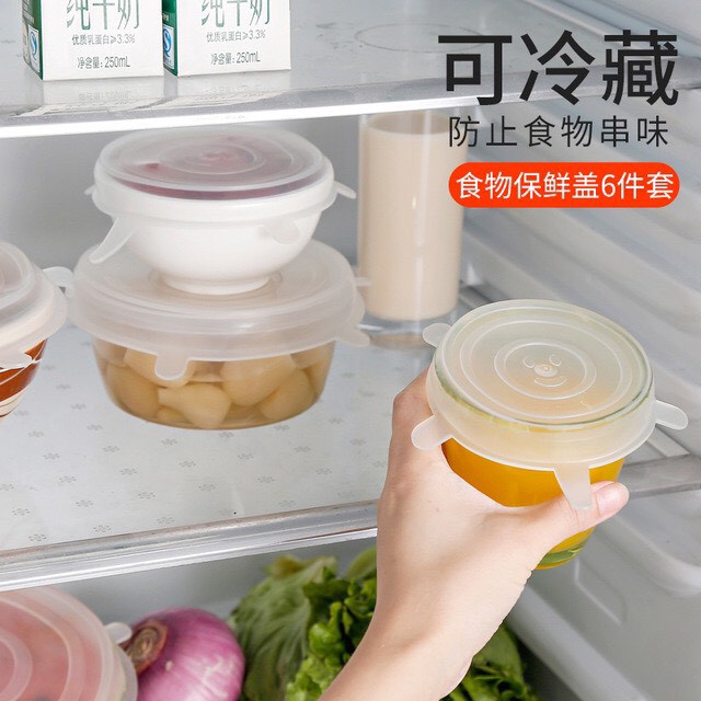 Bộ 6 miếng màng bọc thực phẩm silicon co giãn bảo quản thức ăn