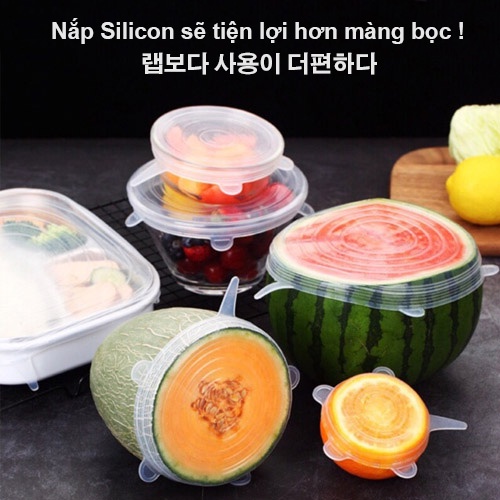 - Được làm bằng chất liệu silicone, độ đàn hồi tốt, dùng để đậy trực tiếp vào hộp đựng tròn hoặc trái cây