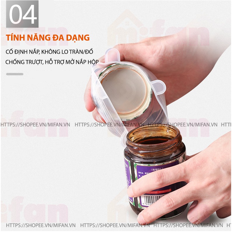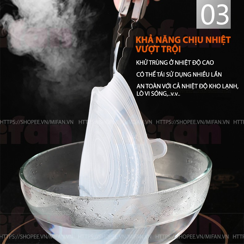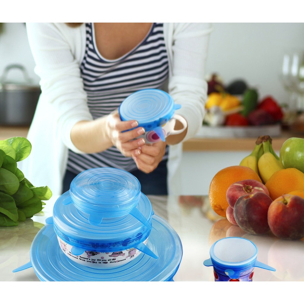 NẮP BỌC THỰC PHẨM SILICONE AN TOÀN - GIẢI PHÁP BẢO VỆ SỨC KHOẺ VÀ MÔI TRƯỜNGBỘ 6 MIẾNG - HÀNG LOẠI 1 (110 gr) DÀY VÀ DAI HƠN CÁC LOẠI HÀNG GIÁ RẺ (100 gr)