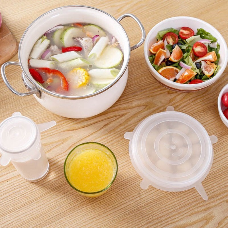 Bộ 6 Miếng Silicone Bọc Thực Phẩm Cao Cấp - Nắp đậy màng Silicon bảo quản thức ăn Dày Dặn Độ Co Giãn Tốt